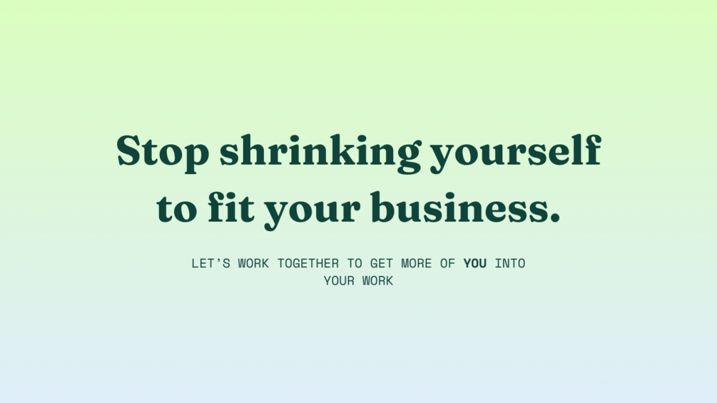 I truly believe that we can create businesses built in the shape of ourselves, instead of shrinking ourselves to fit someone else’s idea of business.